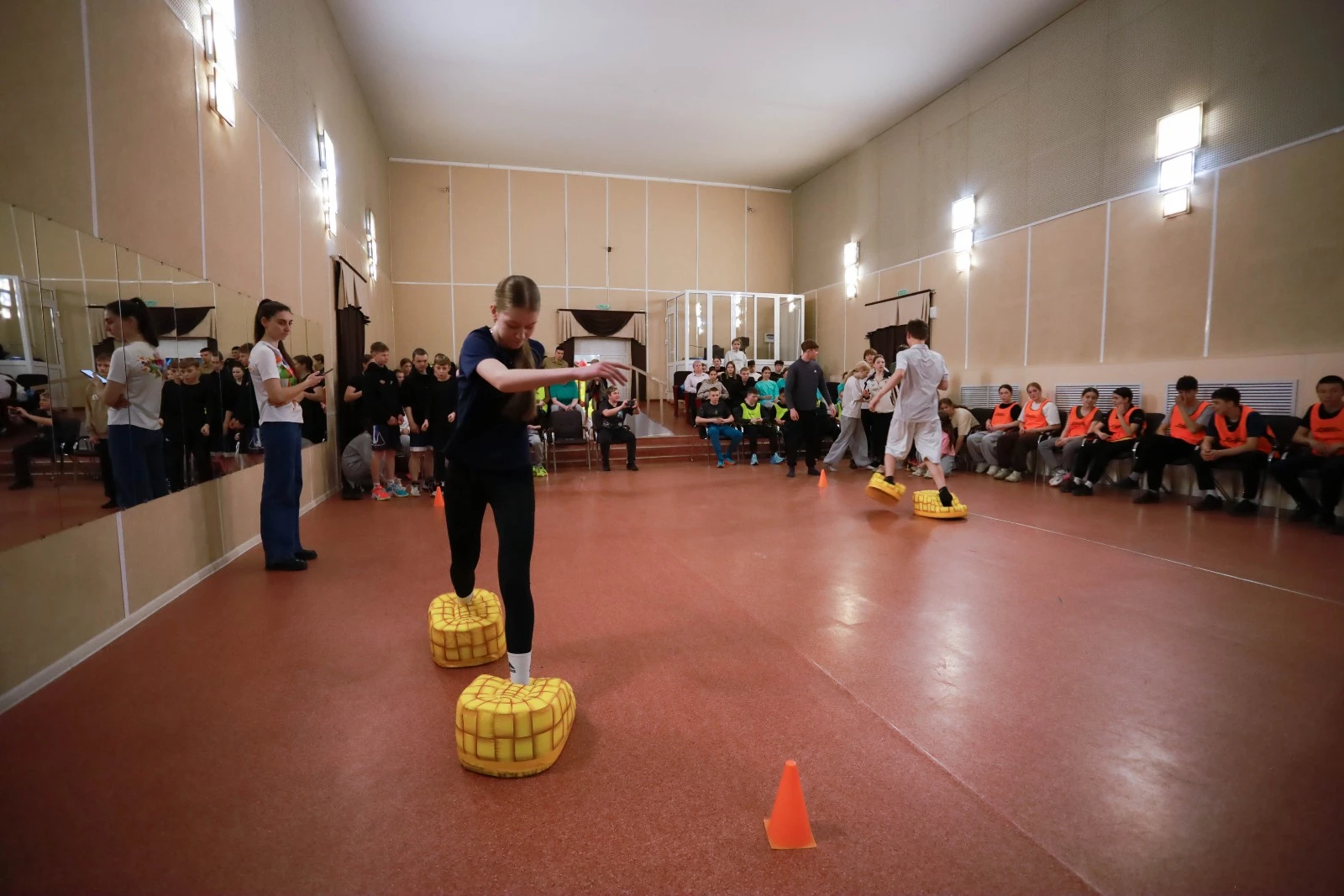 Команды посоревновались между собой в различных конкурсах: конкурс с передачей футболки путем надевания ее друг на друга, эстафета в лаптях и др. Некоторые испытания оказались сложнее прочих, однако ребята молодцы, справились со всеми заданиями и проявили свою сплоченность.